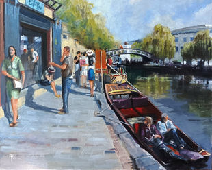 At this time of year, Camden Lock has a host of visitors. Many enjoy a trip on the Music Boat..which inspired my painting.